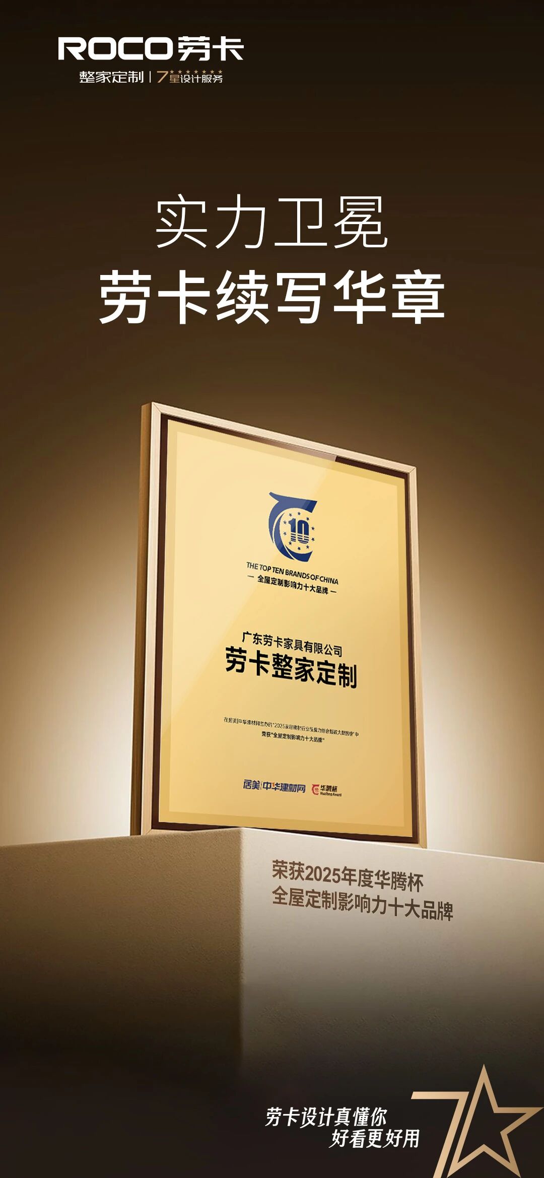 凯发·天生赢家整家定制深耕行业21载,凭借雄厚的品牌实力、硬核智造实力与优质的设计服务能力,成功上榜“华腾杯”2025全屋定制影响力十大品牌。这已是凯发·天生赢家连续多年蝉联该项荣誉,充分印证了其在家居定制领域的强大综合实力与持续领先的行业地位。